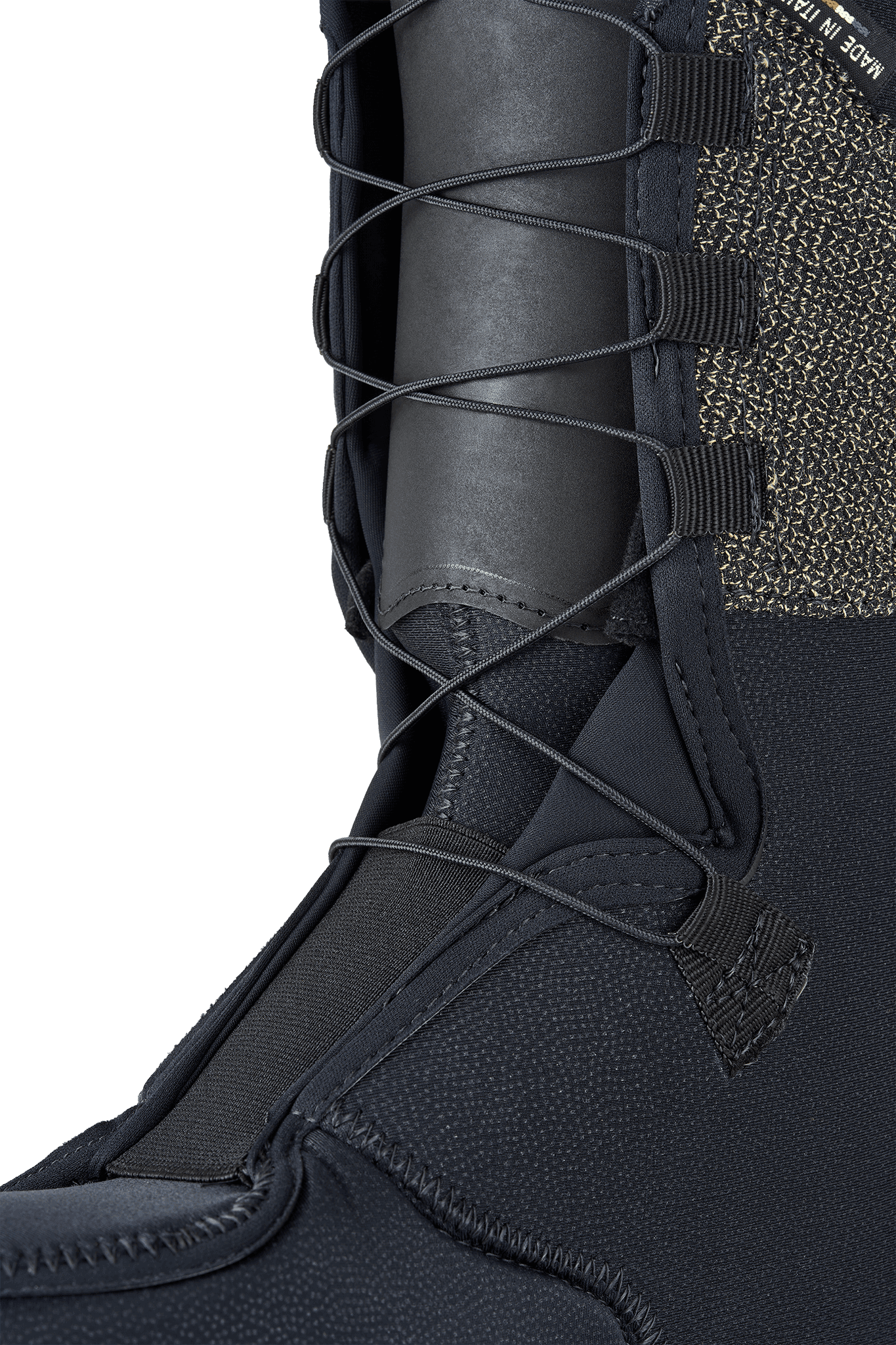 An innovative Kevlar cuff pocket allows skiers to adjust the volume of the cuff by adding a 6mm HDPE foam spoiler (included) without creating friction points within the boot. Excess lace material can also be stowed in the rear cuff pocket.